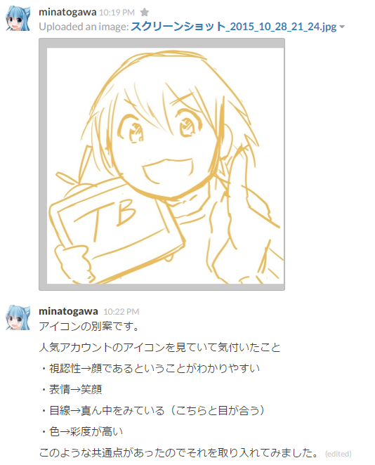 てぃーびーさんの記事に書いてある通り、湊川さんはいいアイコンの法則を知っており、さらに表現することができます。
